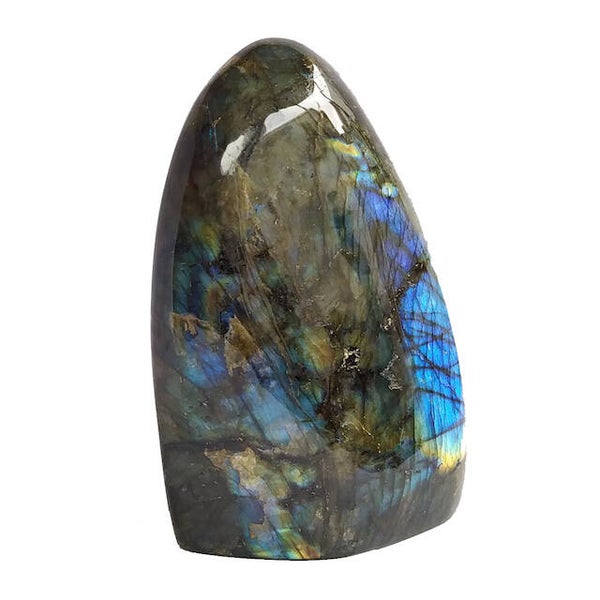 Labradoriet sculptuur. Rondom gepolijst met rechte onderkant, zodat hij goed blijft staan.