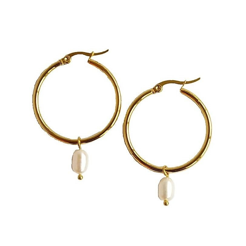 Creolen rvs parel goud