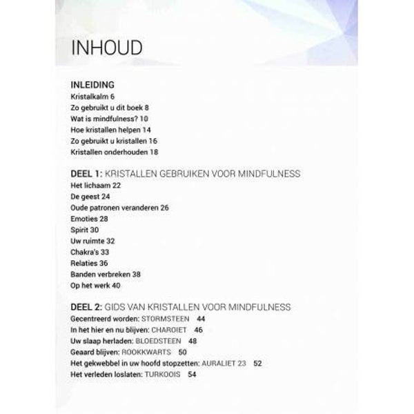 Zou u graag mindful willen leven, maar lukt het u niet gefocust te blijven op het hier en nu? Denkt u constant vol spijt aan het verleden of piekert u over de toekomst? Dan kan mindfulness u helpen. Deze laagdrempelige en effectieve nieuwe methode combineert bezinning en aandacht voor het moment met het gebruik van kristallen, met als resultaat: