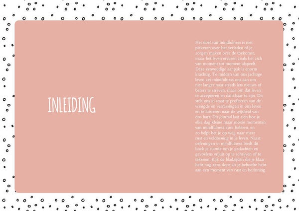 Mijn Mindfulness Journal staat vol met bespiegelende citaten, treffende uitspraken en eenvoudige oefeningen. Leg je momenten en ervaringen vast, zodat je echt in het huidige moment kunt leven en ervan kunt genieten. Dit boek leidt je door verschillende aspecten van je leven en helpt je rust vinden en te omarmen wat het leven te bieden heeft. Mindfulness is een reis – En zelfs de grootste ontdekkingsreizigers kunnen onderweg weleens wat hulp gebruiken!