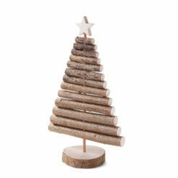 Kerstboom van hout. Geef er je eigen draai aan door de takjes te draaien zoals jij het mooi vindt. Met 5 sterren en 5 engeltjes om de boom te decoreren.